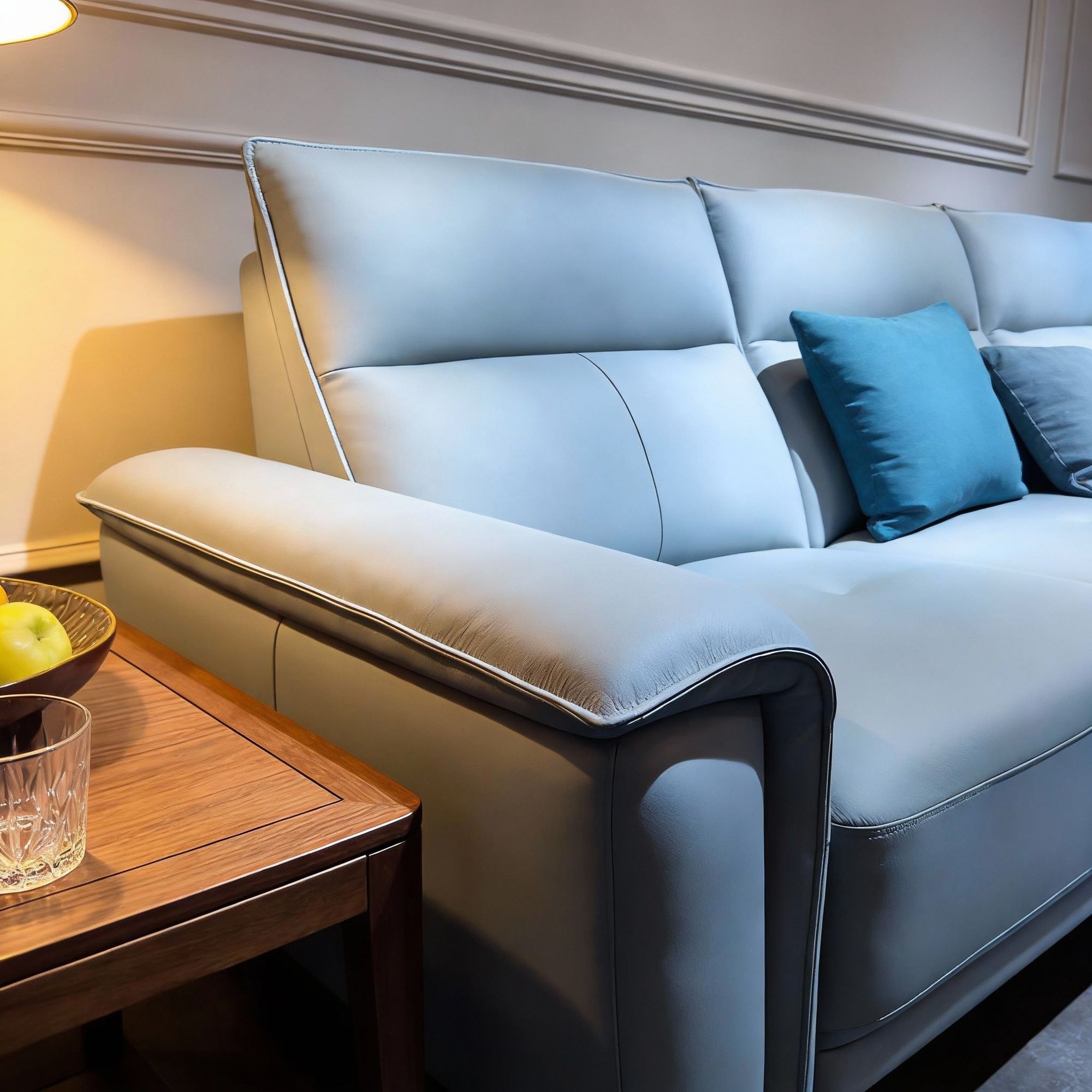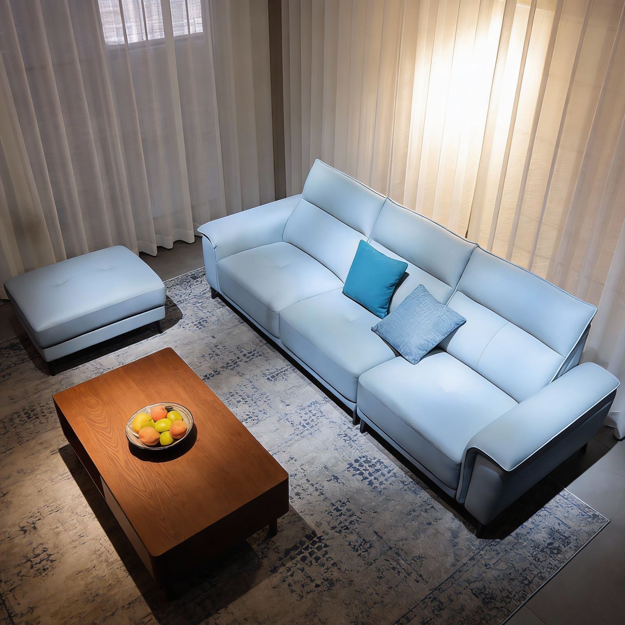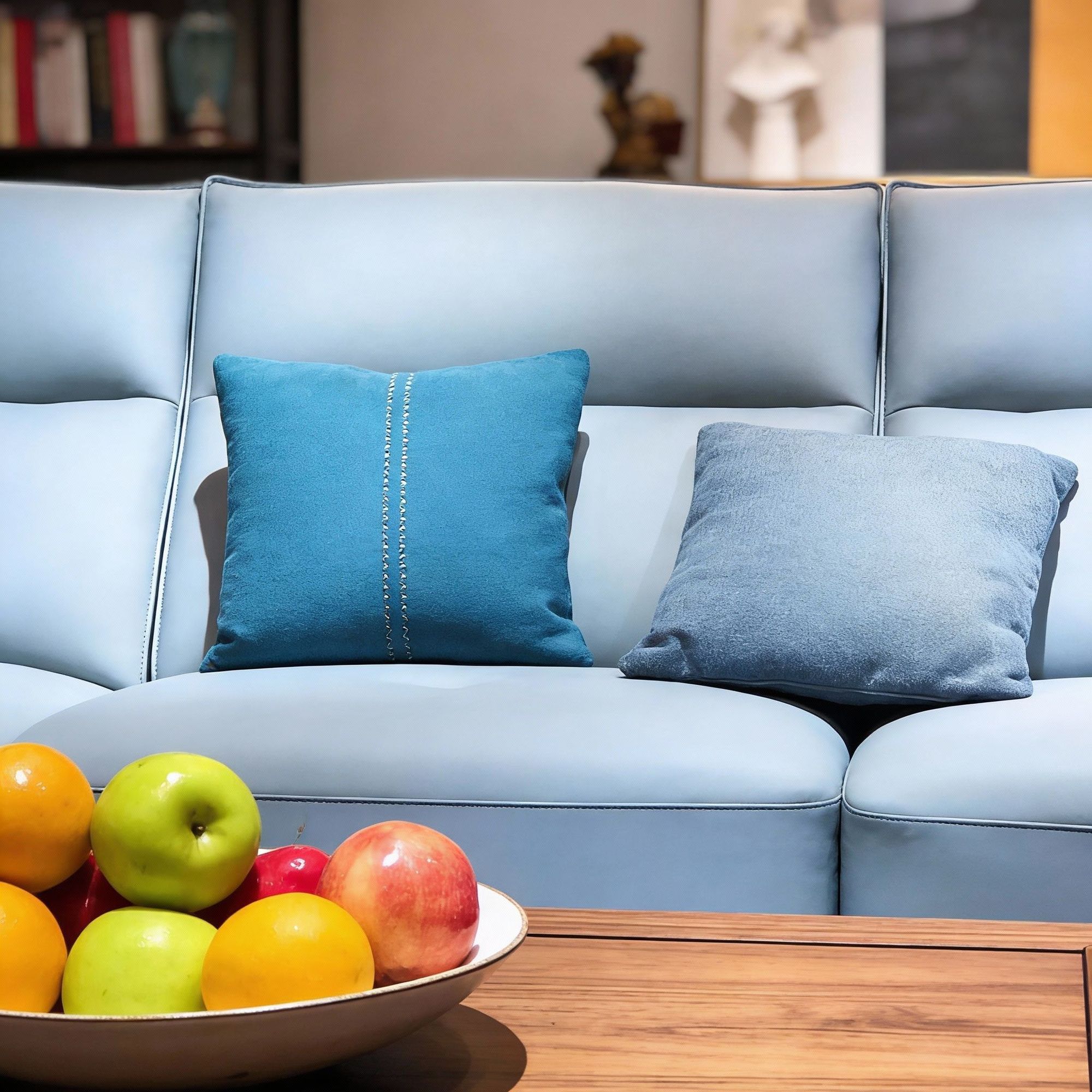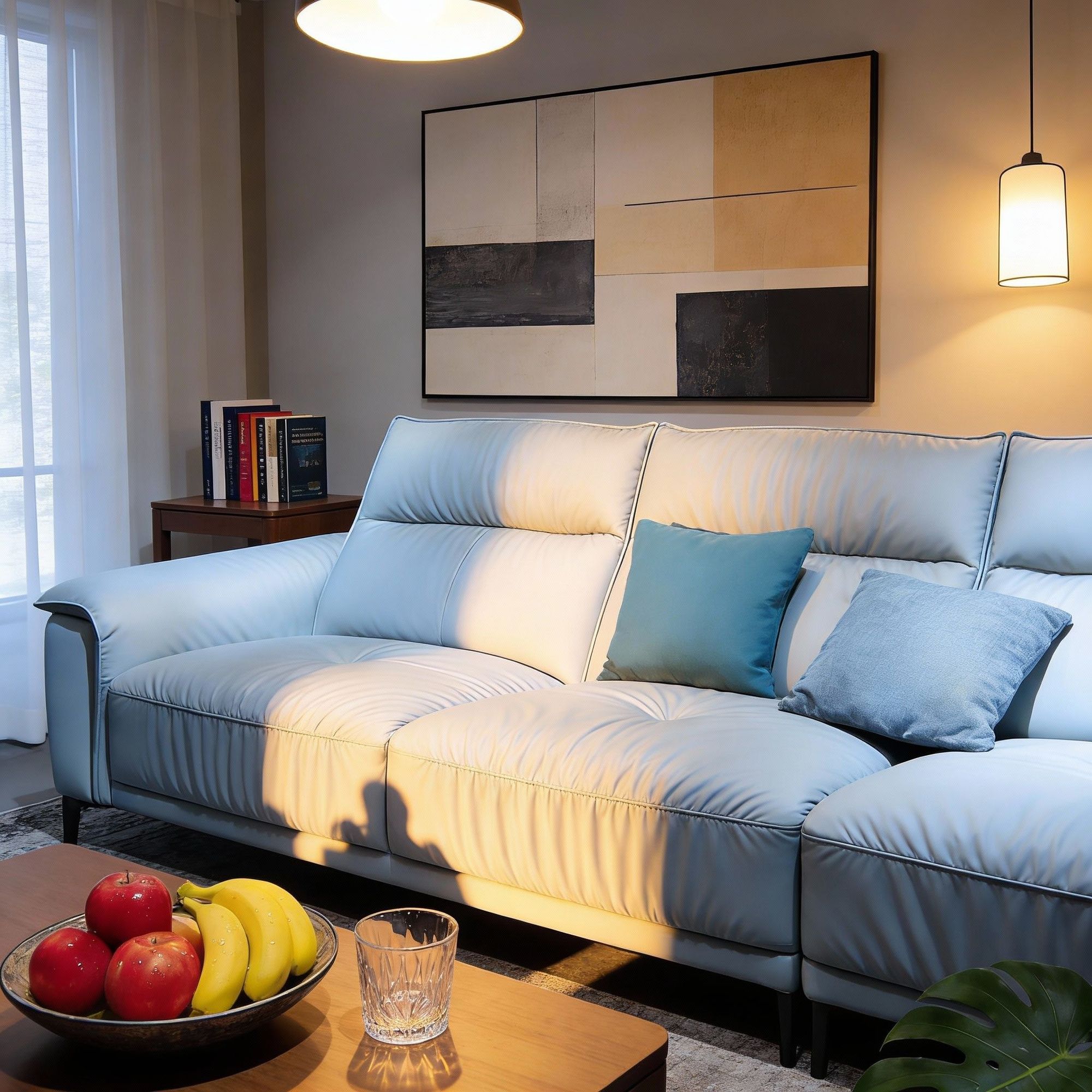 material: Pine frame, cushion made of high resilience foam, filling consisting of elastic cotton, fabric made of top layer cowhide + matching leather