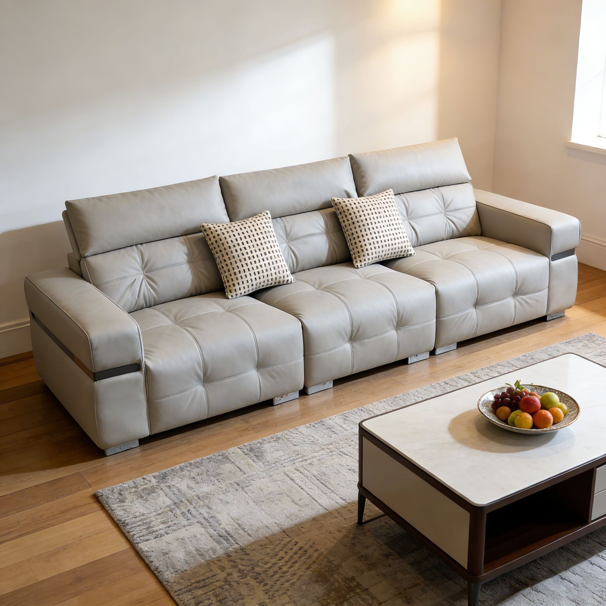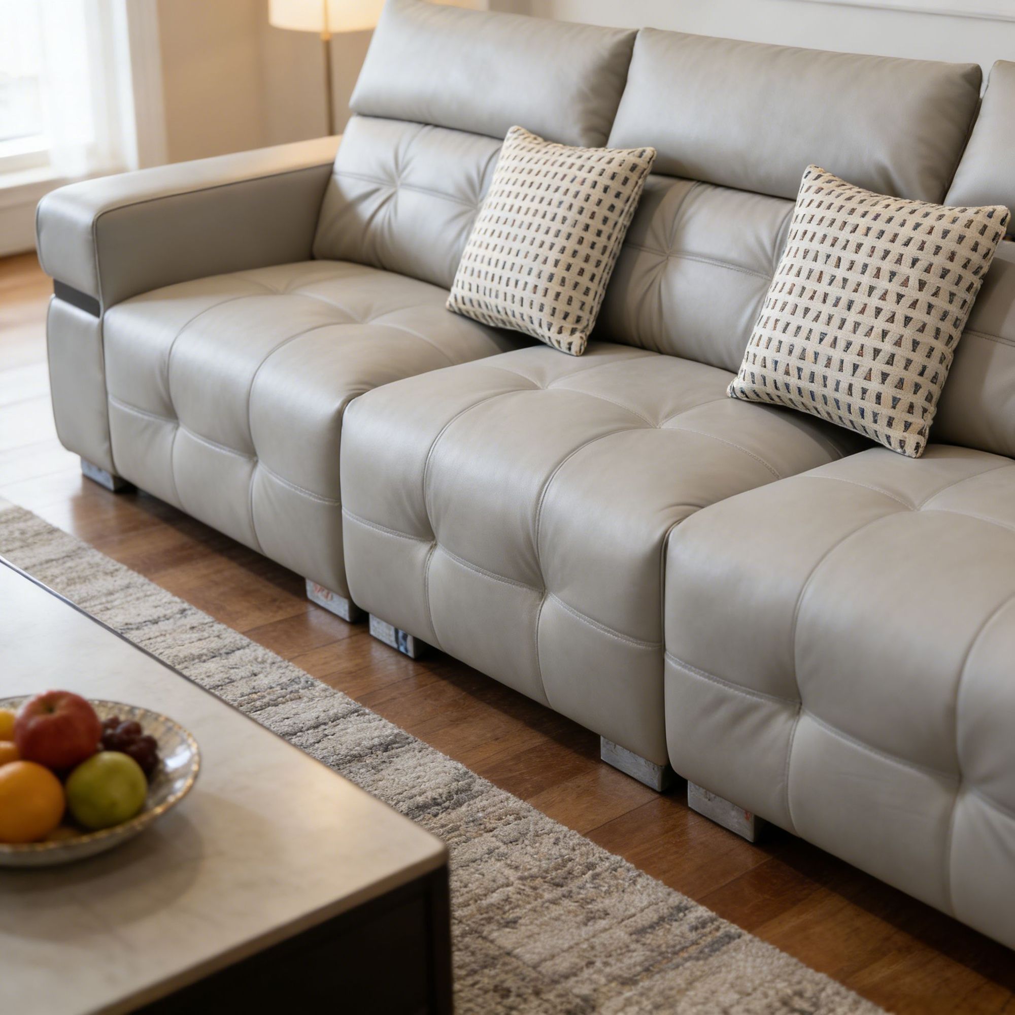 material: Pine frame, cushion made of high resilience foam, filling consisting of elastic cotton, fabric made of top layer cowhide + matching leather